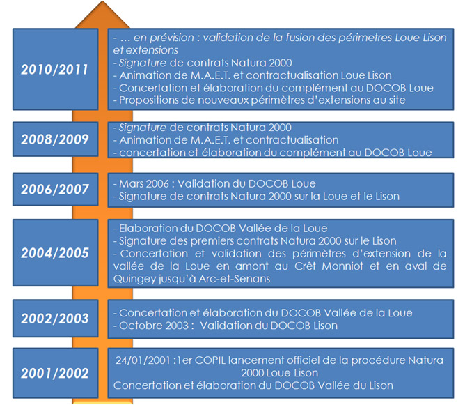 Le document d'objectifs de la Vallée du Lison a été approuvé en 2003, et le document d'objectifs de la Vallée de la Loue de sa source à Quingey le fut en 2006.